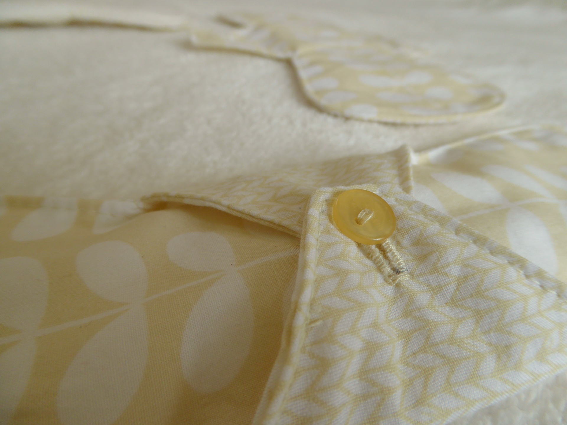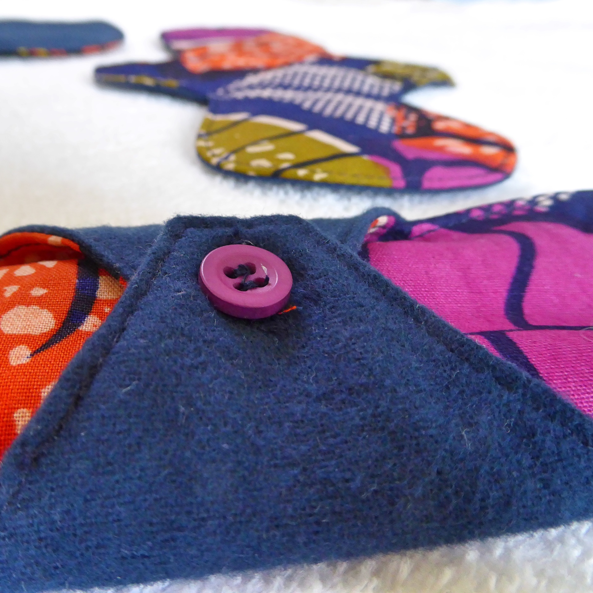 Feitos à mão (nota: o padrão de cada penso varia) Fecho com botão, que poderá ser material em reutilização.