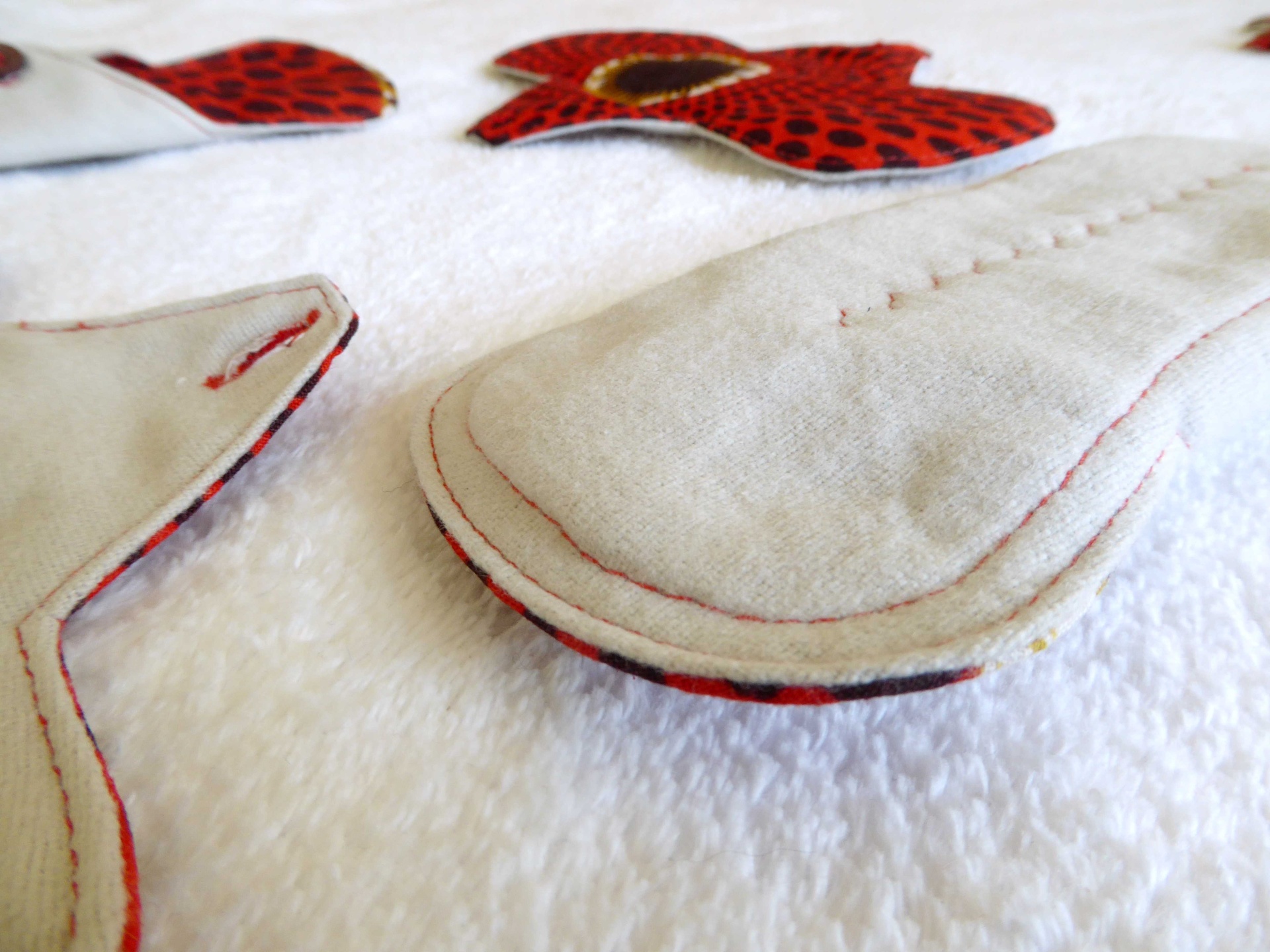 Feitos à mão (nota: o padrão de cada penso varia) Fecho com botão, que poderá ser material em reutilização.