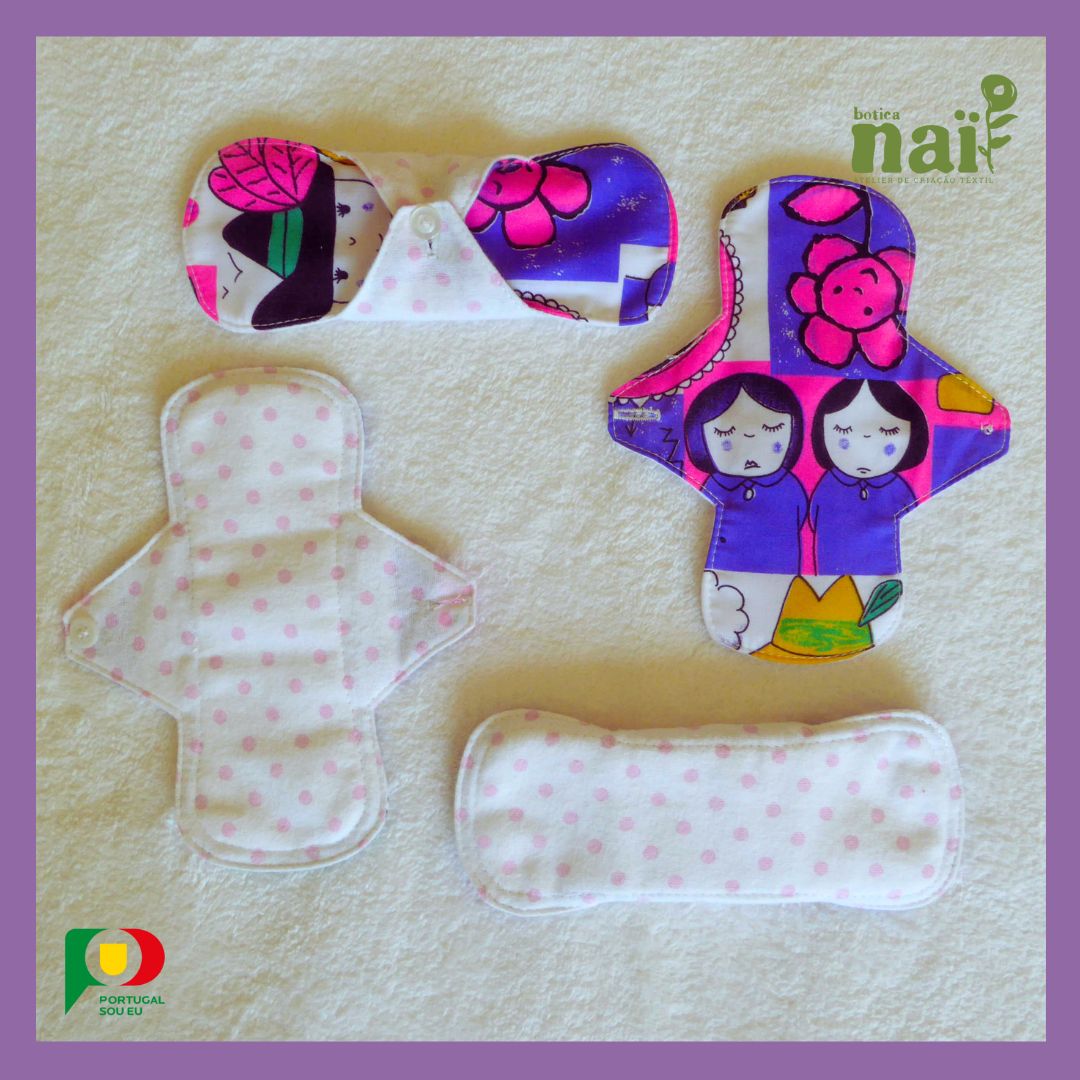 Os pensos higiénicos reutilizáveis são uma alternativa ecológica e mais saudável aos pensos descartáveis. Feitos em algodão, são mais confortáveis, respiráveis e bonitos!